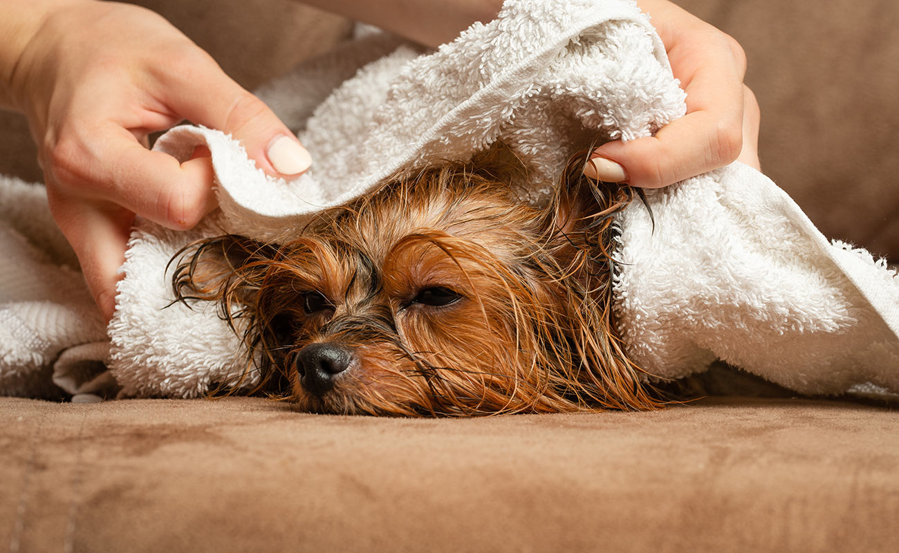 Le séchage à l’air libre vous paraît être une bonne idée ? Pas si sûr ! Une fois dehors, votre chien mouillé ira directement se rouler dans l'herbe ou dans la boue ! Et c’est reparti pour la douche... Outre l’odeur de chien mouillé, le risque d’attraper froid n'est pas à exclure. On insiste donc bien sur le séchage avec une serviette absorbante, un peignoir ou un pulseur.
