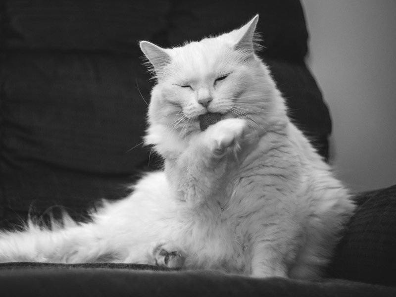 La formation de nœuds dans le pelage est principalement liée à la longueur du poil. Un poil long s’emmêlera plus facilement qu’un poil court. Le brossage du pelage devra donc être plus fréquent pour éviter les nœuds extrêmes inesthétiques et mauvais pour la santé de votre chat ! Par ailleurs, la vieillesse, les maladies (arthrose, problèmes bucco-dentaires,…), le surpoids, peuvent entraîner des difficultés pour le chat à se toiletter seul et correctement. Il aura besoin d’un petit coup de pouce de votre part pour l’entretien de son pelage.